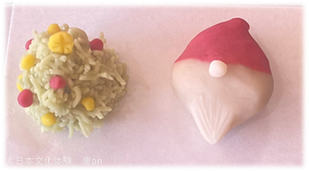 本日より練り切り和菓子の題材が「サンタクロース」、「クリスマスツリー 」になりました。